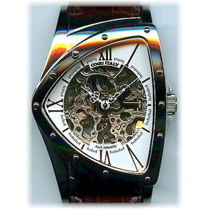 ブランド:COGU(コグ)Cosimo Gucci デザイナー:コジモ・グッチ 自動巻き腕時計(自動巻き・手巻き機能付) 表面スケルトン、裏面スケルトン 本皮ベルト、ステンレススチール 腕廻りサイズ:約17?21cm 重量:約82g 付属品:専用ケース・取扱説明書 メーカー保証:4年 製造:中国製